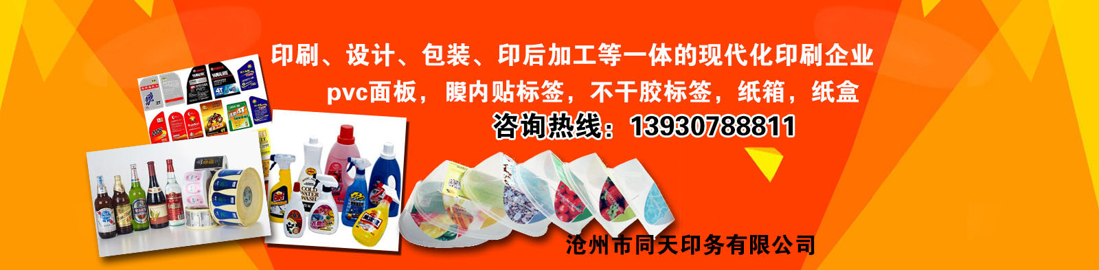 點擊了解更多>>滄州市同天印務有限公司是集印刷、設計、包裝、印后加工等一體的現(xiàn)代化印刷企業(yè)。我公司成立于2002年,擁有世界先進印刷設備,專業(yè)生產(chǎn)加工吸塑紙卡,pvc面板,膜內(nèi)貼標簽,不干膠標簽,紙箱,紙盒,防偽標簽等。公司產(chǎn)品遠銷海外,亞洲(日本、馬來西亞、新加坡、印度尼西亞)歐洲(烏克蘭、德國)大洋洲(新西蘭)北美洲(加拿大、美國、墨西哥)同天以其精美的印品和完美的售后服務在業(yè)界贏得較高的知名度。我公司尊崇“踏實、拼搏、責任”的企業(yè)精神,并以誠信、共贏、開創(chuàng)經(jīng)營理念,創(chuàng)造良好的企業(yè)環(huán)境,以全新的管理模式,完善的技術,周到的服務,卓越的品質為生存根本,我們始終堅持用戶至上 用心服務于客戶,堅持用自己的服務去打動客戶。歡迎各界朋友蒞臨我公司參觀、指導和業(yè)務洽談......